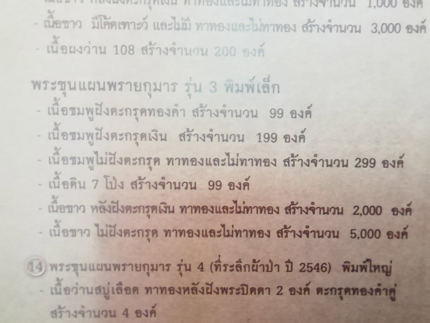 屈朗夾 龍婆沙曠 2543 坤平細模 十布路版本 金殼 G卡 貨號: A0001 分類: 古董/珍貴佛牌, 坤平 標籤: 龍婆沙曠 商品說明 額外資訊 商品說明 屈朗夾 龍婆沙曠 2543 坤平細模 十布路版本 金殼 G卡 只製造299件。非常稀有。 亦可買賣交換,互補差價。 $3,xxx 額外資訊 尺寸 1.8 × 1.3 cm 相關商品 龍婆添龍婆嬌共同開光 2518 花術 棺材蓋坤平 坤平編契 Gpra卡 連金殼 閱讀全文 古巴陣得 屈朗橙冠 2535 全泰第一坤橙 細模(已被供請) 閱讀全文 龍婆添 靈木自身 有卡 連金殼 閱讀全文 龍婆彭 2553 第一期 草藥坤平 $400.00 加入購物車