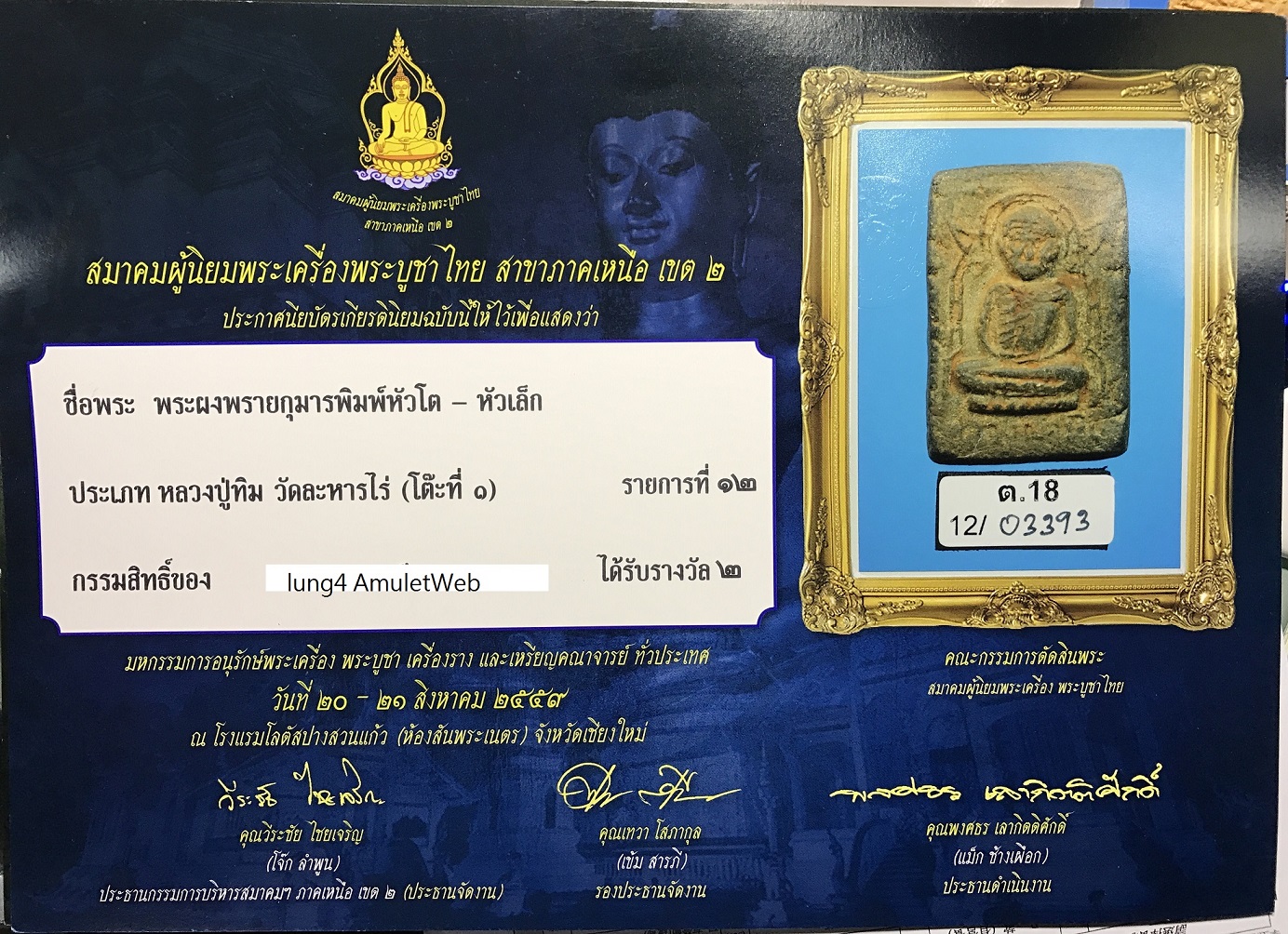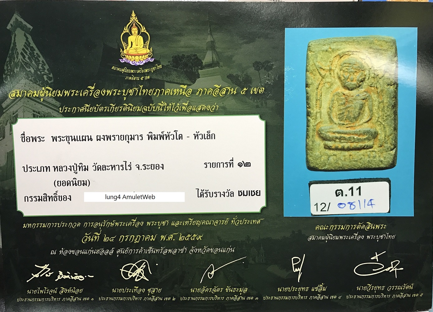 龍婆添 屈喇霞麗 黑肉大頭9點模 鑽石金殼 2比賽證書及沙馬共卡 貨號: A0028 分類: 古董/珍貴佛牌, 師父自身 標籤: 龍婆添 商品說明 商品說明 龍婆添 屈喇霞麗 黑肉大頭9點模 鑽石金殼 2比賽證書及沙馬共卡 市面仿品黑肉大頭太多, 請留意上圖厚圖鑑內的黑肉大頭模形. 相關商品 龍婆添 靈木自身 有卡 連金殼 閱讀全文 屈萬冠碰 2517 阿贊多自身 第一名 閱讀全文 古巴陣得 屈朗橙冠 2535 全泰第一坤橙 細模(已被供請) 閱讀全文 龍婆公2523 自身騎虎 閱讀全文